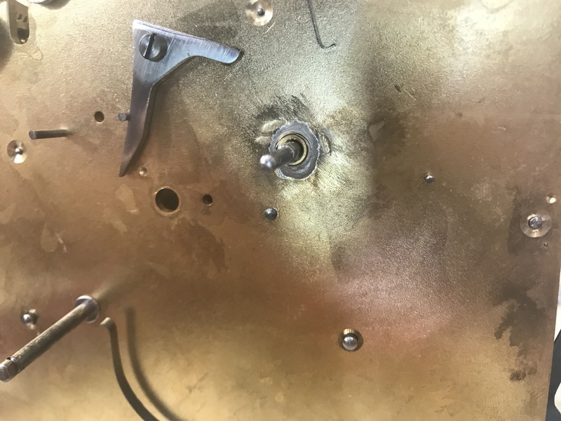 Too often we experience that movements were only partially or not at all cleaned or overhauled even so the customer paid for it. The movement to the left was supposedly overhauled, wich would include disassmbling, cleaning, bushing and repair. Instead the wholes are all dirty, showed a lot of wear and no bushing has been inserted.